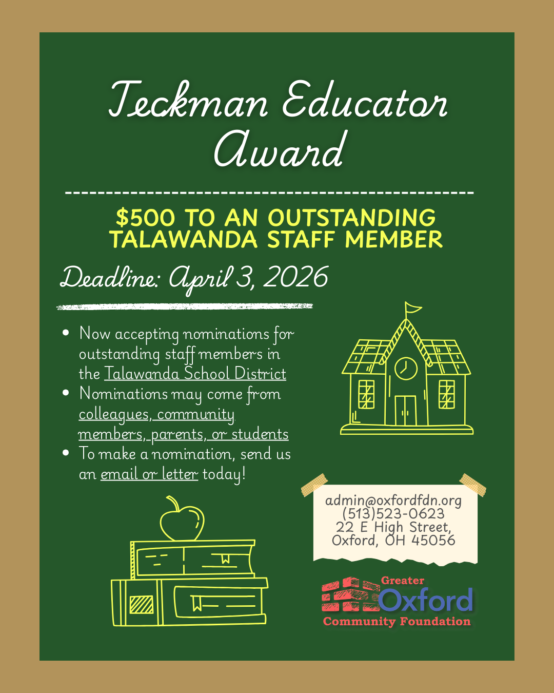 Questions or interest in volunteering? Contact OPRD at 513-523-6314 or email OPRD@cityofoxford.org
